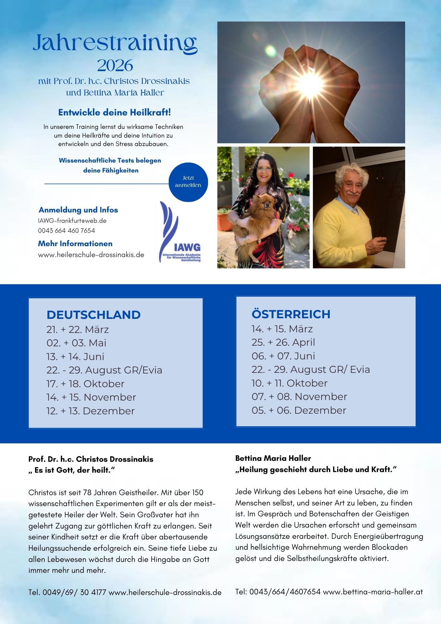 Entwickle dein Potential zum Geistigen Heilen – in der “Internationalen Akademie für Wissenschaftliche Geistheilung”.